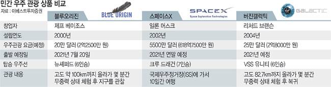 버진갤럭틱 역시 올해 하반기 리처드 브랜슨 회장이 직접 탑승한 우주비행을 시작한 뒤 내년 초 일반인을 대상으로 한 우주관광을 본격 시작할 예정이다. 버진갤럭틱은 이미 600여 명에게 탑승권을 예약 판매한 상태다.