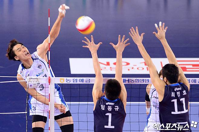 2014년 4월 3일, 천안유관순체육관에서 열린 '2013-2014 NH농협 V리그' 남자부 현대캐피탈 스카이워커스와 삼성화재 블루팡스의 챔피언결정전 4차전 경기, 삼성화재가 세트스코어 3-0(25-18, 25-22, 25-22)으로 완파했다.