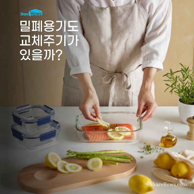 유리용기는 거의 반영구적으로 사용할 수 있다. 하지만 본체에 균열이 생기거나 테두리 부분에 홈이 파였다면? 안전한 사용을 위해 교체가 필요하다. 플라스틱 용기와 마찬가지로 고무 패킹이 늘어나 밀폐력이 감소했다면 교체해 주는 게 좋다.