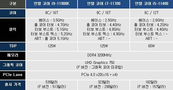 코어 i5-11400에서 그래픽 코어만 비활성화한 모델이 바로 코어 i5-11400F다.