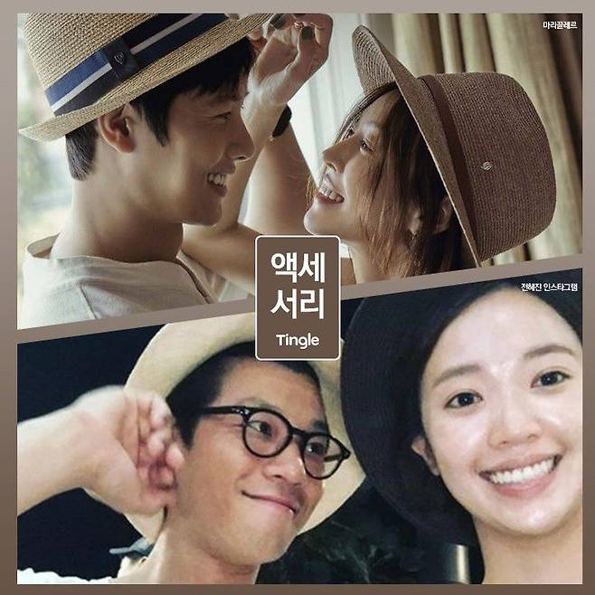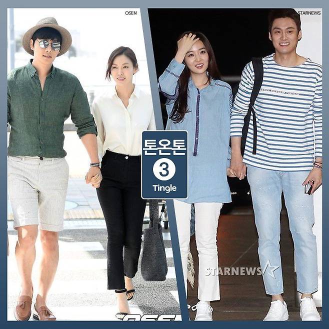 액세서리 하나도 그냥 지나칠 수 없죠. 여름에 많이 찾게 되는 플로피 햇도 시밀러 룩을 완성 시키는데 도움이 되죠. 이천희&전혜빈 부부처럼 모자 컬러와 상의 컬러를 서로 다르게 매치하여 블랙&화이트 패션을 완성 시키거나, 이상우&김소연 부부처럼 비슷한 컬러로 착용해도 좋죠.