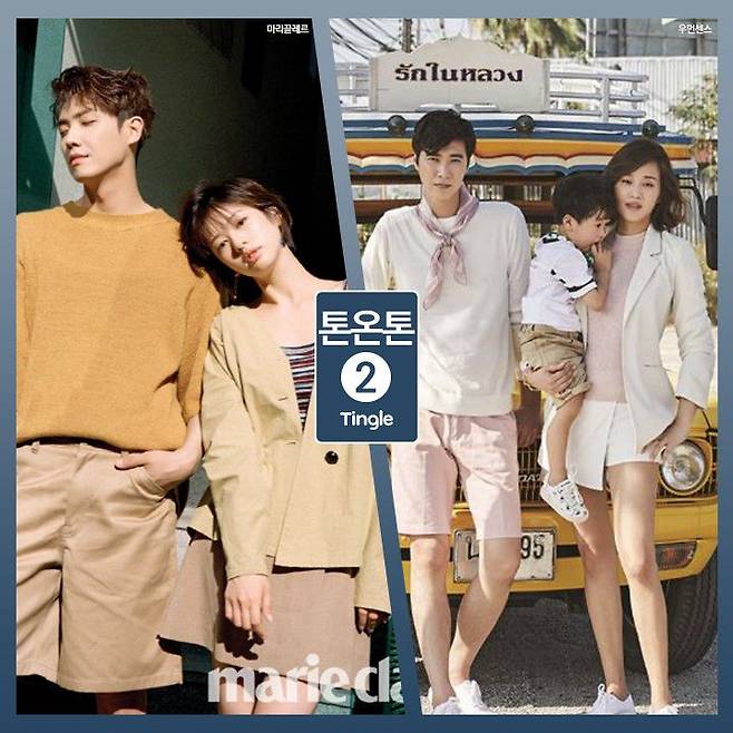 보고 있으면 포근한 느낌이 드는 채도가 낮은 컬러로 시밀러 룩을 연출한다면 다정한 커플처럼 연출 할 수 있겠죠. 고지용 가족은 베이지와 핑크 컬러로 센스 있는 패밀리 룩을 완성했네요. 이번 여름 가족여행을 떠나신다면 참고해보세요.