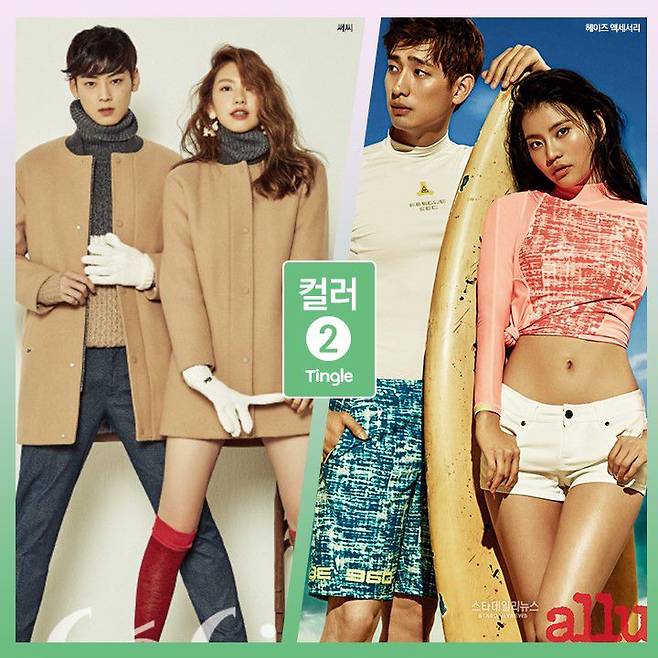 재질과 디자인이 달라도 컬러가 비슷하다면 시밀러 룩은 완성되는데요. 새 옷을 살 필요 없이 서로 가지고 있는 옷을 활용할 수 있는 시밀러 패션이죠. 서현은 핑크 스웨터를, 고경표는 핑크 셔츠를 데님에 매치해 따로 입어도 좋은 패션을 완성했어요.