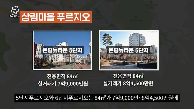 구파발역 초역세권의 입주 2년차 새 아파트인 은평스카이뷰자이 실거래가는 전용 84㎡가 11억7,800만~12억원 선에 거래되고 있고, 박석고개힐스테이트1단지의 전용면적 84㎡는 10억2,000만원입니다. 반면 상림마을은평뉴타운1단지롯데캐슬은 이보다 저렴한 84㎡가 9억4,000만원, 5단지푸르지오와 6단지푸르지오는 84㎡가 7억9,000만원에서 8억4,500만원에 거래되고 있습니다.