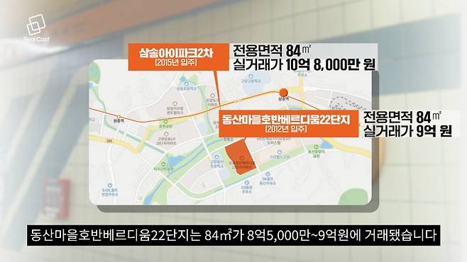 삼송역 주변 아파트들은 최근 몇 년 새 가격이 많이 올랐습니다. 삼송아이파크2차는 전용면적 84㎡가 10억~10억8,000만원에 거래됐고 동산마을호반베르디움22단지는 84㎡가 8억5,000만~9억원에 거래됐습니다.