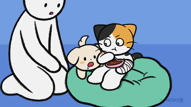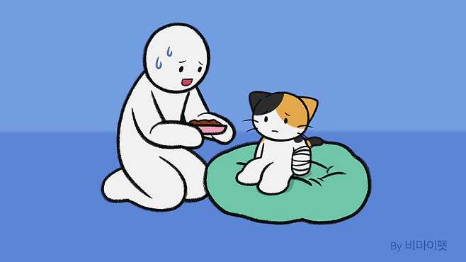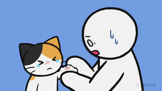 사람이 다치면 앓는 소리를 내는 것처럼 고양이도 다치면 아옥! 하는 울음소리를 냅니다.