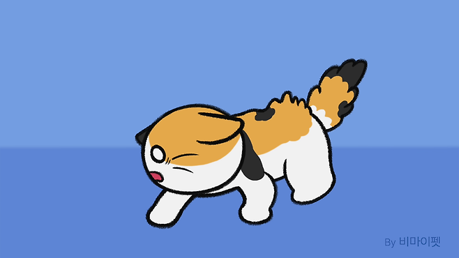 외부 자극으로 인해 경계심을 표현하는 경우 몸을 웅크리고 털을 세우는 모습도 보일 수 있습니다.