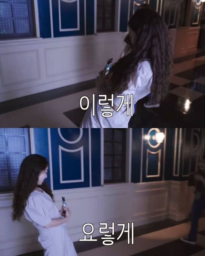 영상 속 아이유는 스태프들의 포즈에 대해 "요즘 저 포즈로만 사진을 찍던데..."라고 이야기했는데요.