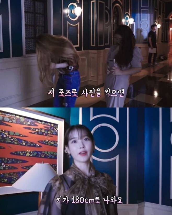 과거 아이유는 자신의 유튜브 영상을 통해 "저 포즈로 사진 찍으면 키가 180으로 나와요"라며 스태프의 사진 찍는 법을 공유한 적이 있는데요.