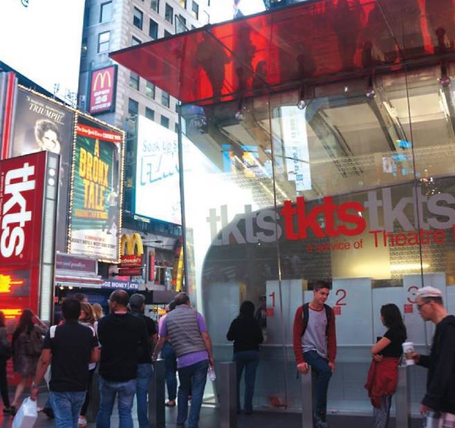 * 찾아가기 : Time Sq.-42St.에서 7th Ave.를 따라 300m 직진, 더피 광장 언덕 아래에 위치. 멀리서도 ‘TKTS’ 부스가 보여요.