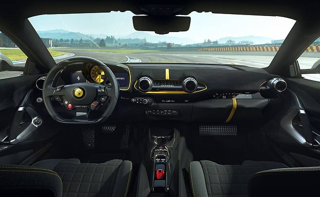 812 컴페티치오네의 핵심은 역시 엔진. 1,000마력짜리 PHEV 하이퍼카인 SF90이 나온 마당에 어쩌면 마지막 순수 내연기관 자연흡기 V12가 될지 모를 812 슈퍼패스트의 심장을 개선했다. 최고출력은 830마력, 최대토크는 70.56kgm다.