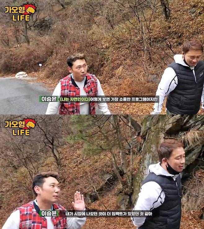 치악산을 오르며 이승윤은 “나를 불태웠다는 그런 느낌. 그 순간들이 내 인생에서 되게 몰두했던 순간 같다. (나는 자연인이다 프로그램이) 어떻게 보면 가장 소중한 프로그램이지만, 내가 시합 나갔던 것이 더 임팩트가 있었다. 맞았을 때의 번쩍거림을 아직도 생생하게 기억하고 있다”고 회상했다.