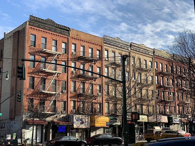 3층에서 5층 정도의 낮은 아파트인 이런 건물들은 맨하탄의 주택가에 많이 있는데 남쪽으로는 소호와 이스트빌리지, 북쪽으로는 어퍼웨스트와 어퍼이스트에서 쉽게 찾을 수 있습니다.