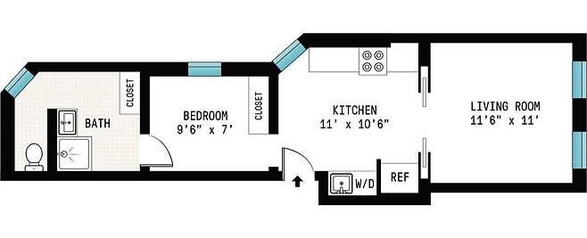 방들이 줄줄이 늘어선 아파트들을 레일로드 아파트먼트, 즉 기찻길 아파트라고 합니다. 뉴욕 부동산 시장에서는 흔히 볼 수 있는 매물로, 상당히 긴 특이한 구조가 특징입니다.
