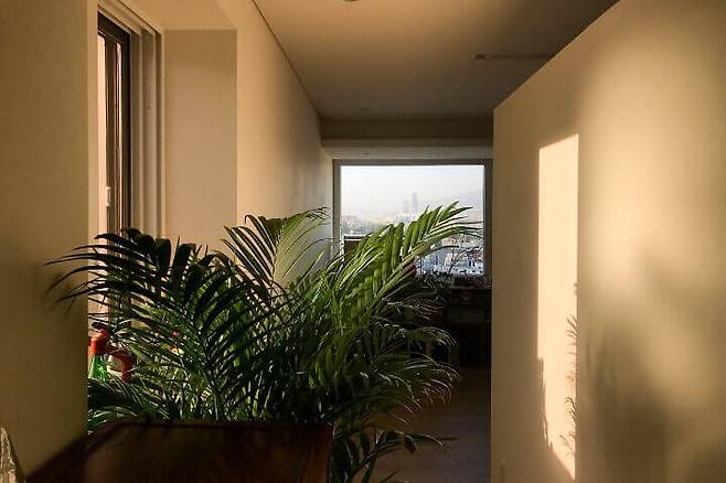 안녕하세요, 건축가 부부 김지은 백병석입니다. 저희는 후암동의 한 아파트에 살고 있어요. 사실 굉장히 오래된 건물이라 고민했지만 거실에 길게 나있는 창과 그 창 밖으로 보이는 뷰가 너무너무 좋더라구요. 그 무엇과도 바꿀 수 없는 거라 생각되어 바로 계약하게 되었습니다.