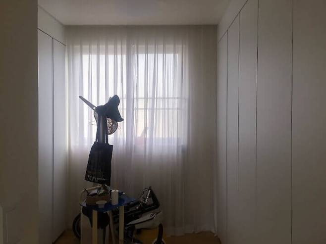 양쪽으로 붙박이장이 설치되어 있거든요. 설계할 때 공간 활용을 정말 중요시하게 여겼는데, 생각한 대로 잘 나온 것 같아 정말 만족스러워요.