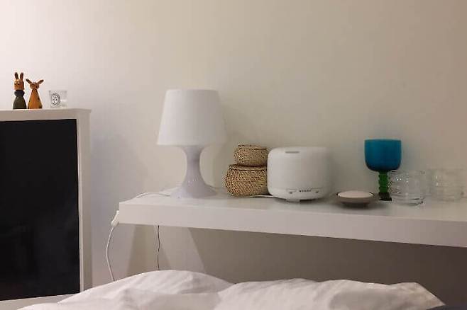 탁상조명 : 이케아 LAMPAN 탁상스탠드 / 아로마 디퓨저 : 무인양품 초음파 가습 아로마 디퓨저