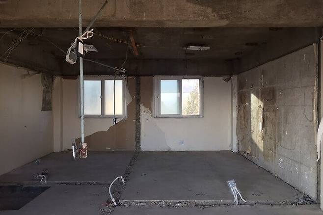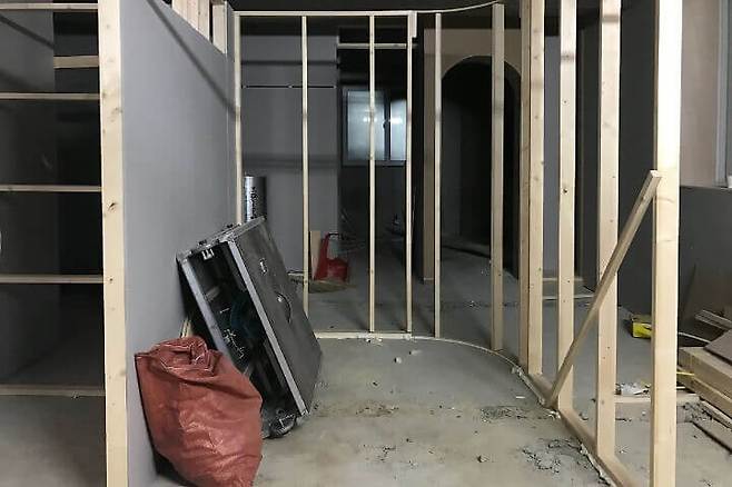 저희가 원하던 마루 공사와 기본적인 페인트 칠이 끝난 모습입니다. 콘크리트로만 둘러 쌓여있던 텅 빈 공간이 어느새 이만큼 변화했습니다.