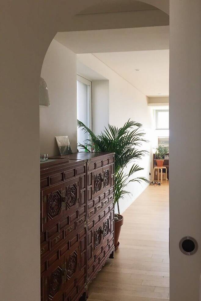 아치 앞 공간에는 한국적인 느낌을 주기 위해 나비장을 두었어요. 이 나비장은 제가 외할머니로부터 받은 거예요. 외할머니께서 직접 의뢰해 만든 좋은 가구죠. 제 기억 속에 이 나비장은 항상 저와 같이 있었던 것 같아요. 외할머니의 나비장이 저희 엄마에게, 그리고 저에게 왔으니까요.