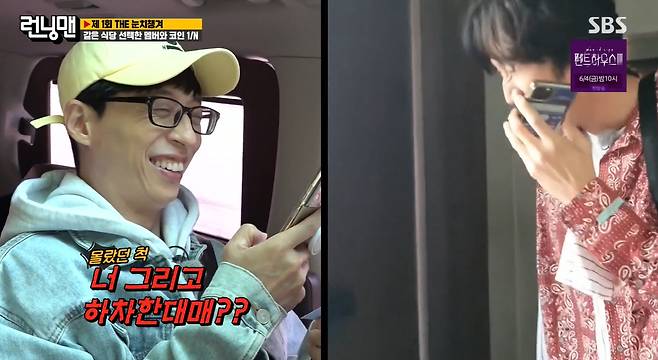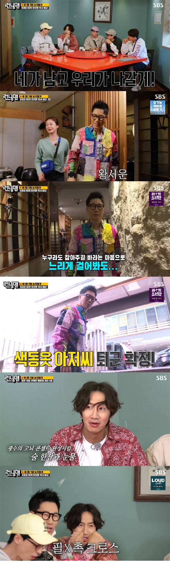 눈치 빠른 사람이 더 빨리 퇴근할 수 있는 '더 눈치 챙겨 레이스'. 첫 선택은 80코인이 걸린 한식당, 30코인이 걸린 중식당 중 결정해야하는 미션. 모인 인원수 만큼 코인을 나눠가져야 하기에 적게 모일 수 있는 식당을 선택해야 했다. 이광수는 멤버들의 전화를 집중 받으며 "하차하신다면서요?"라는 하차 공격에 휩싸였다.