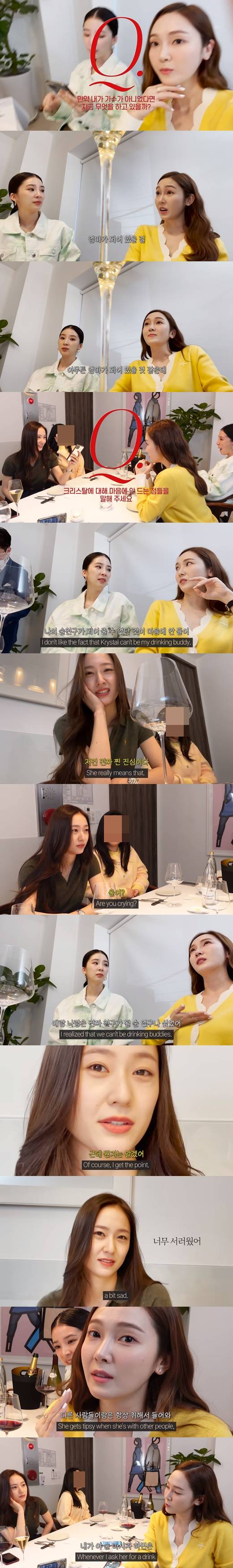 해당 영상에서 제시카는 "오늘은 이렇게 제시카, 크리스탈 '찐 친'들이 모여서 취중진담을 해보려 한다. 재밌을 거 같다"라고 밝혔다. 이 자리엔 제시카와 크리스탈 자매, 모델 아이린, 그리고 크리스탈의 중학교 친구가 함께했다.