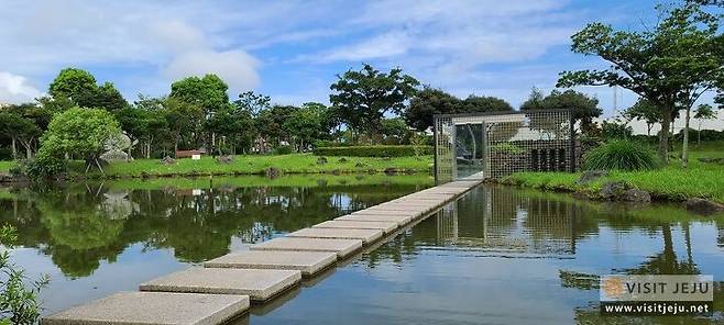 자연과 어우러진 조각 작품과 살랑살랑 부는 가을바람을 느끼며 쉬어갈 수 있는 정자도 마치 한 폭의 그림같이 느껴지는 곳인데요, 공원 산책로와 주변은 울창한 나무들이 가득하고, 마음을 잔잔하게 만들어주는 연못도 있답니다.