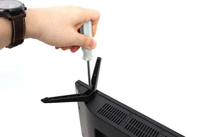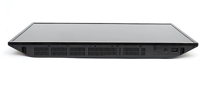 TV 본체 하단을 보면 구멍이 많이 뚫려있는데, 양쪽 끝부분에는 사운드를 출력하기 위한 스피커가 내장되어 있고 나머지는 환기를 위한 구멍이다. 하단의 좌우 가장 바깥 부분에는 홈이 파여있는데, 여기가 스탠드를 고정하는 부분이다.