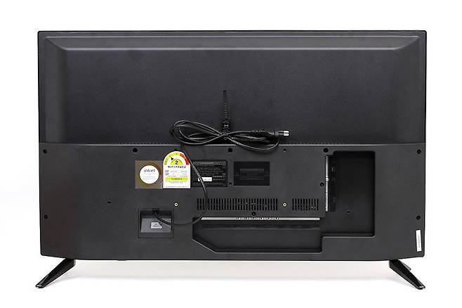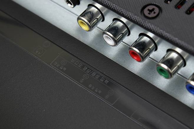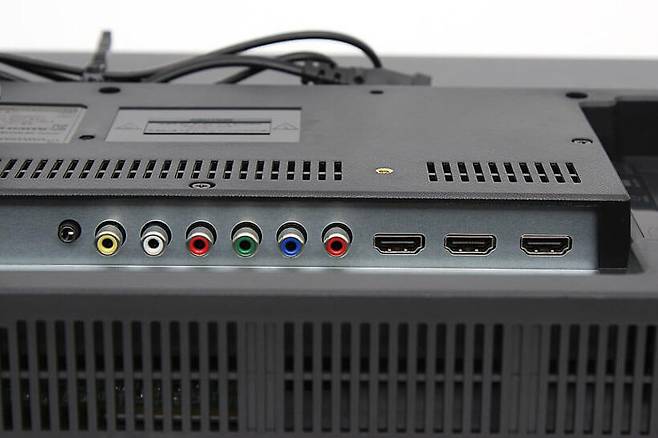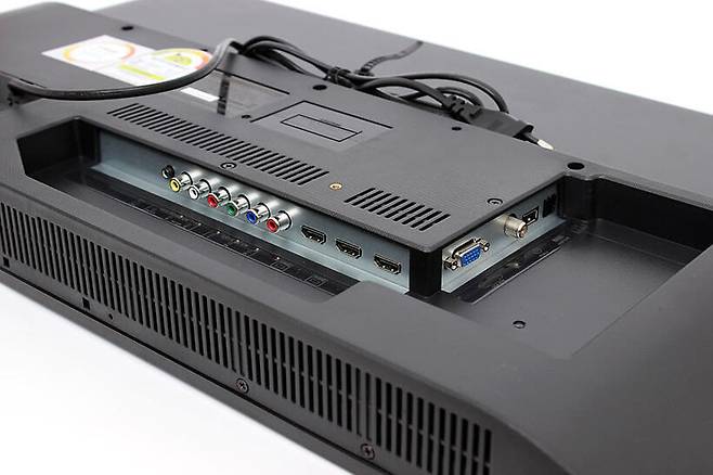 TV 뒷면에는 다양한 입출력 단자가 있다. 단자의 대부분은 아래쪽을 향하고 있지만 일부는 옆쪽을 향하도록 분리되어 있어서 전체적으로 ㄱ자 형태이다.