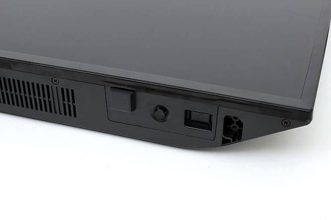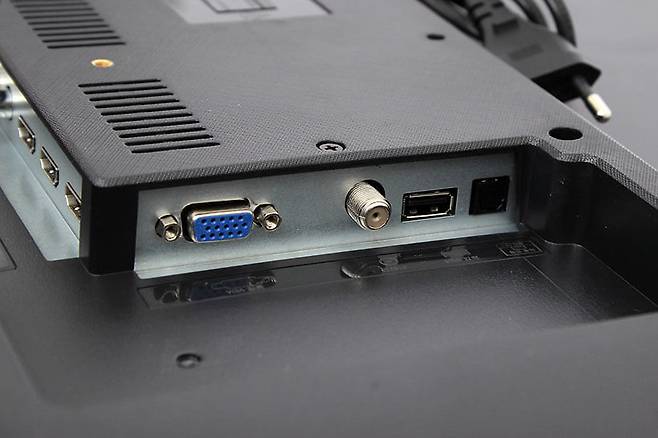 우측 방향으로 나있는 부분에는 VGA 입력 단자와 안테나 입력 단자, USB 포트, 그리고 옵티컬 타입의 디지털 음성 출력 단자가 있다.