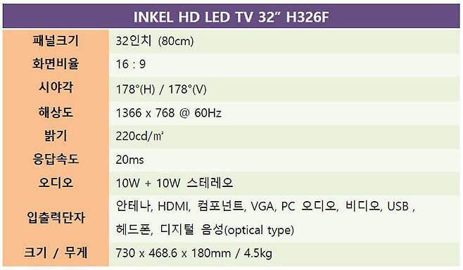 인켈 32인치 LED TV를 처음 구입하면 TV 본체와 스탠드, 사용자 매뉴얼, 리모컨이 함께 제공된다. 탁상형으로 사용하려면 조립 과정을 거쳐야 하는데, 방법이 워낙 간단한 데다가 조립 가이드가 함께 제공되어서 누구나 작업할 수 있다.