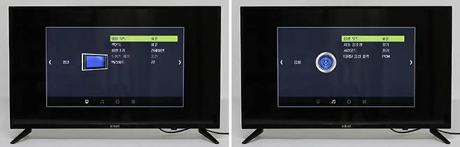 전원을 켜고 리모컨의 메뉴 버튼을 누르면 다양한 설정 화면이 나타난다. 기본적으로 영상, 음향, 시간, 설정 메뉴가 제공되며, 각 항목의 세부항목은 외부입력의 종류에 따라 조금씩 달라진다. 특히 채널 메뉴는 외부입력을 TV로 선택했을 때에만 나타나는데, 안테나를 공중파와 케이블 중에서 선택할 수 있고 디지털 신호 감도도 확인할 수 있다.