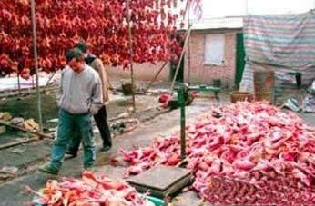 펑깐지는 티베트 지역의 닭고기 요리인데요. 만드는 방법이 엄청나게 잔인해요. 닭 털을 몽땅 뽑아 닭의 뱃속에 양념을 넣고 닭을 대롱대롱~ 바람이 통하는 곳에 걸어놓아요. 문제는 이때 닭이 살아있다는 점이에요.