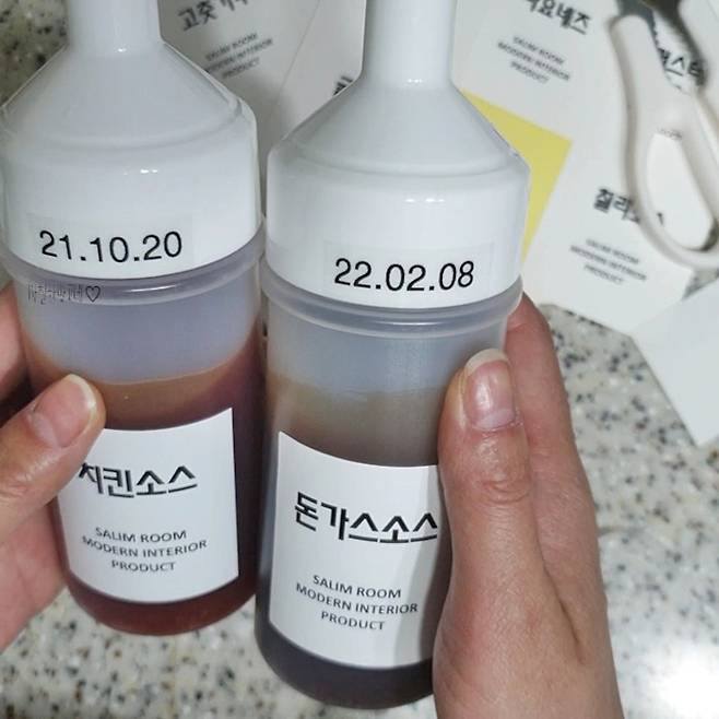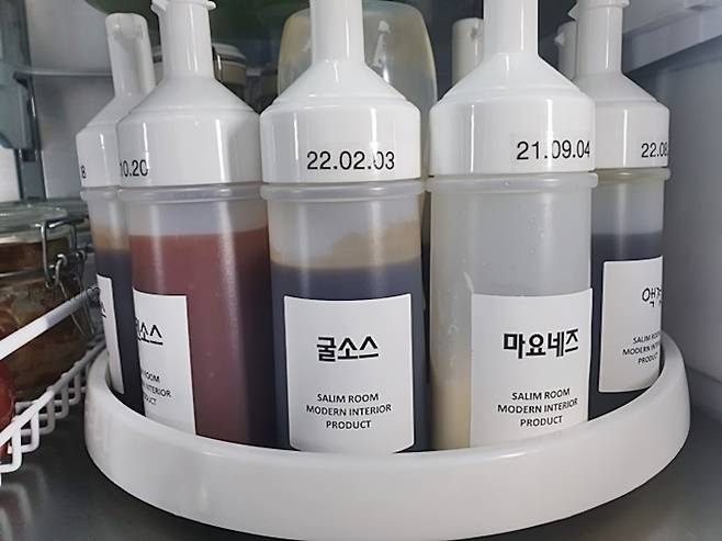 기본 스티커 라벨에 없는 건 제작도 해주는데, 저는 액젓과 치킨소스를 추가했지만 치킨소스만 온 바람에 ㅎㅎ 액젓은 직접 네임펜으로 기입해서 사용했답니다.