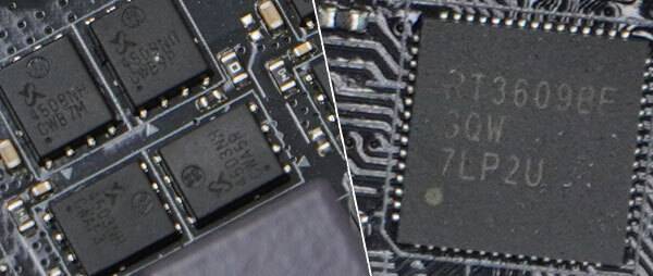 특히 I/O 포트쪽의 전원부 방열판은 발열을 효과적으로 처리할 수 있도록 별도의 보호용 커버가 필요없을 정도로 대폭 키웠고, 방열판 표면에는 미세한 입자가 연상되는 처리를 통해 방열면적을 보이는 것 이상으로 키워 효율을 높였다. 이는 전원부 방열판과 M.2 SSD 방열판, 칩셋 방열판 모두에 적용된다.
