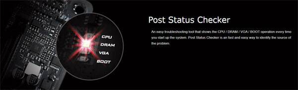 한편, 가장 하단의 PCIe 3.0 x16(x4Lane) 슬롯의 카드 고정 클립 부분에는 POST 상태 체크용 LED를 달아, 부팅시 CPU와 메모리, 그래픽 카드, 부트 스토리지의 이상 여부를 직관적으로 확인할 수 있도록 편의성을 더했다.