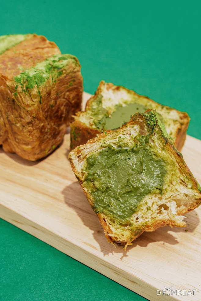말차 큐브 데니쉬의 빵 표면은 크루아상처럼 바삭하고, 안쪽은 촉촉하고 부드러워요. 빵 안에 넉넉하게 들어 있는 말차 크림에서는 커스터드 크림의 달콤함과 함께 말차 특유의 쌉싸름함이 함께 느껴지죠. 빵과 크림 자체가 조금 단 편이니, 아이스 아메리카노 등과 함께 즐기는 것을 추천할게요.