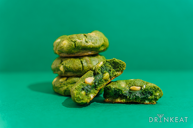 포미스커피의 말차 가나슈는 마카다미아가 콕콕 박혀 있는 쿠키예요. 가운데에는 진하고 꾸덕한 말차 가나슈가 아낌없이 들어가 있어요. 쿠키 자체가 쫀득쫀득한 것이 특징. 화이트 초콜릿의 달콤함과 말차 가나슈의 맛이 조화롭게 어우러져, 쌉싸름하기보다는 중독적인 달콤함을 자랑합니다.
