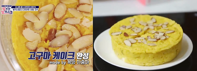 다이어트를 위해 밀가루와 이별해야 하는 빵순이에게 추천하는 ‘고구마 달걀빵’. 밀가루와 설탕, 버터, 우유 등을 포함해 그 어떤 합성보존료도 들어가지 않은 프레시한 건강빵으로, 밀가루 못지않은 촉촉함과 고구마의 천연 단맛을 사용해 맛있게 즐길 수 있다. 먼저 달걀흰자만 따로 분리하다. 흰자는 휘저어 거품을 만든다. 달걀노른자를 넣고 다시 거품을 낸다. 찐 고구마를 으깨준다. 달걀과 고구마를 고루 섞어주고, 취향에 따라 견과류도 넣어준다. 적당한 그릇에 담은 후, 전자레인지에 7분 동안 익혀준다.