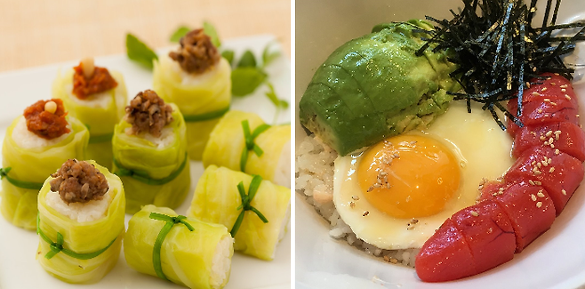 재료만 넣어 간단하게 뚝딱해 먹을 수 있고, 저염식으로 다이어트에도 좋은 ‘아보카도 명란 덮밥’. 여기에 알록달록 색감이 살아있어 더욱 먹음직스럽다. 먼저 잘 익은 아보카도를 손질해 먹기 좋게 썰어준다. 달걀 프라이를 만든다. 명란젓은 껍질을 제거하고 속살만 발라낸다. 밥그릇에 적당량의 밥을 담고 아보카도, 달걀 프라이, 명란젓을 가지런히 올린다. 김가루와 통깨를 솔솔 뿌려준다. 참기름을 살짝 둘러 완성한다.