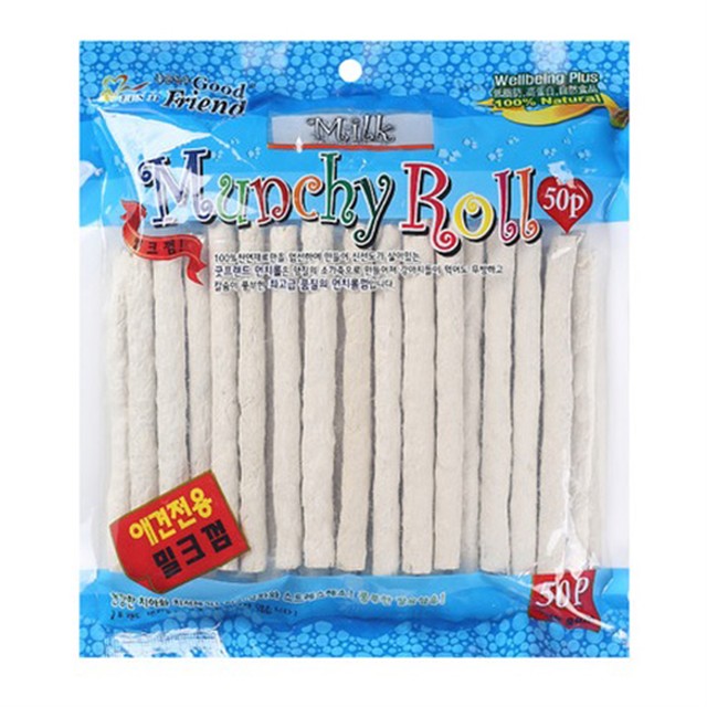 용량과 가격이 참 착하고 무난한 개껌이였어요. 우유향은 정말 밀크쉐이크 비슷한 향이납니다. 구매 전에는 꼭 상품설명란에 명시 되어 있는 권장급여 방법을 참고해주세요~