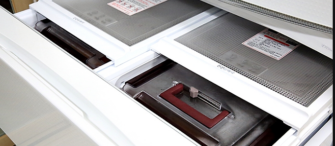 LG는 아래칸 서랍도 간접냉각식으로 이는 장점이자 단점입니다. 이 덕분에 성제제거 열 발생 문제는 없지만, 근본적으로 (직접냉각식 서랍 대비) 정온유지에 불리합니다.