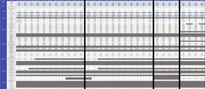 아래표의 ‘빨간색’으로 표시된 부분은 경쟁사 대비 장점이라 할 수 있는 항목입니다.