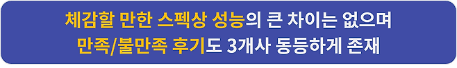 온라인 고객후기 대부분을 검토해보아도 만족/불만족 사례는 3브랜드 모두 존재→큰차이가 없어 ‘특정 브랜드가 우수하거나 부족하다 단정짓기는 어렵습니다.