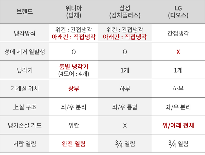 위니아-삼성-LG 순으로 특징 및 장/단점을 알아보겠습니다.