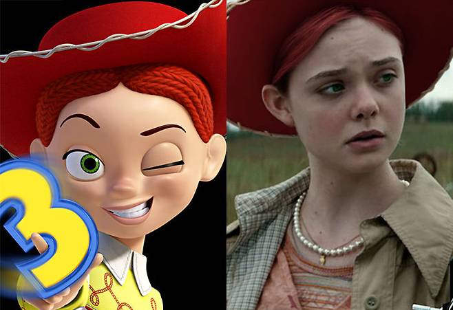 ‘토이 스토리 2′(1999)에서 첫 등장한 카우걸 제시와 닮은 스타는 엘르 패닝이다. 특히 ‘슈퍼 에이트'(2011) 속 엘르 패닝의 모습은 제시의 스타일과 많이 닮아있다. 만약 ‘토이 스토리’가 실사화 된다면 가장 완벽한 싱크로율을 보여줄 것으로 기대된다. 어린 시절부터 차곡차곡 쌓아 온 필모그래피를 바탕으로 이제는 성숙한 연기와 이미지로 많은 사랑 받고 있는 엘르 패닝은 7월 4일(목) 개봉 예정인 ‘갤버스턴’에서도 만나볼 수 있다.