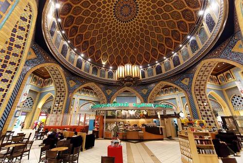 카페 위 돔 천장은 페르시아 타일로 덮여 있으며 화려한 샹들리에로 강조했습니다. 거대한 아라비안 궁전을 연상케 하는 이곳에서 차를 음미하면 마치 중동의 부호가 된 듯한 느낌이 들 것입니다.