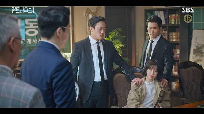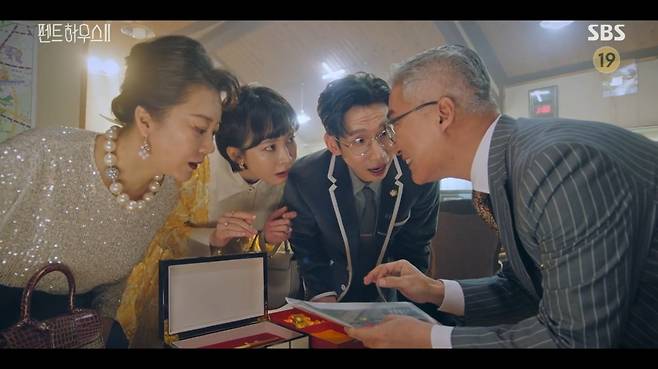천서진은 입 다물고 주단태의 지시에 따랐다. 석훈이와 석경이가 "이제 집에서 밥 안 먹는다"면서 먼저 자리를 뜨자 단태는 짜증을 냈다. 하지만 서진은 고분고분하게 딸을 위해 희생하는 엄마의 모습을 연기했다. 천수지구 개발 정보를 미리 입수한 펜트하우스 사람들은 투기에 열을 올렸다. 이들에게 땅을 판 황금봉은 심수련의 사람이었다.