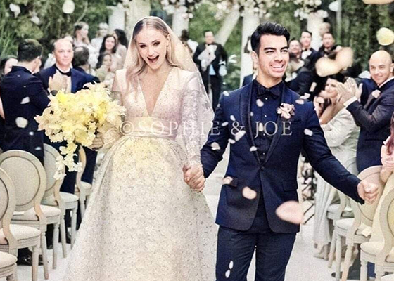드라마 <왕좌의 게임>에서 산사 스타크 역으로 인기를 끌었던 소피 터너는 조나스 브라더스의 조 조나스와 2번의 결혼식을 올렸다. 첫 결혼식은 라스베이거스의 한 채플에서 30분가량 스피드 하게 진행했으며 DJ 디플로의 인스타그램 라이브 방송으로 생중계되었다. 소피 터너는 첫 결혼식에서 드레스는 생략하고 실크 점프 슈트에 베일을 둘러 힙하고 쿨한 웨딩룩을 선보였다.