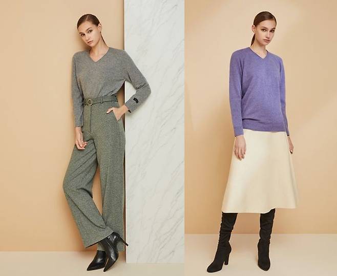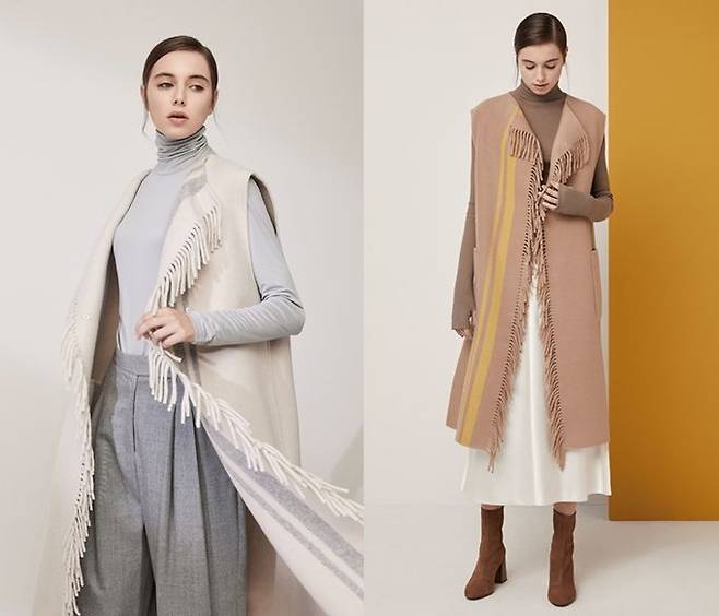또한 모노톤의 멜란그레이, 크림베이지, 카멜 컬러부터 비비드한 바이올렛, 루비핑크, 허니옐로우 등 컬러로 다채로운 스타일링이 가능하다.