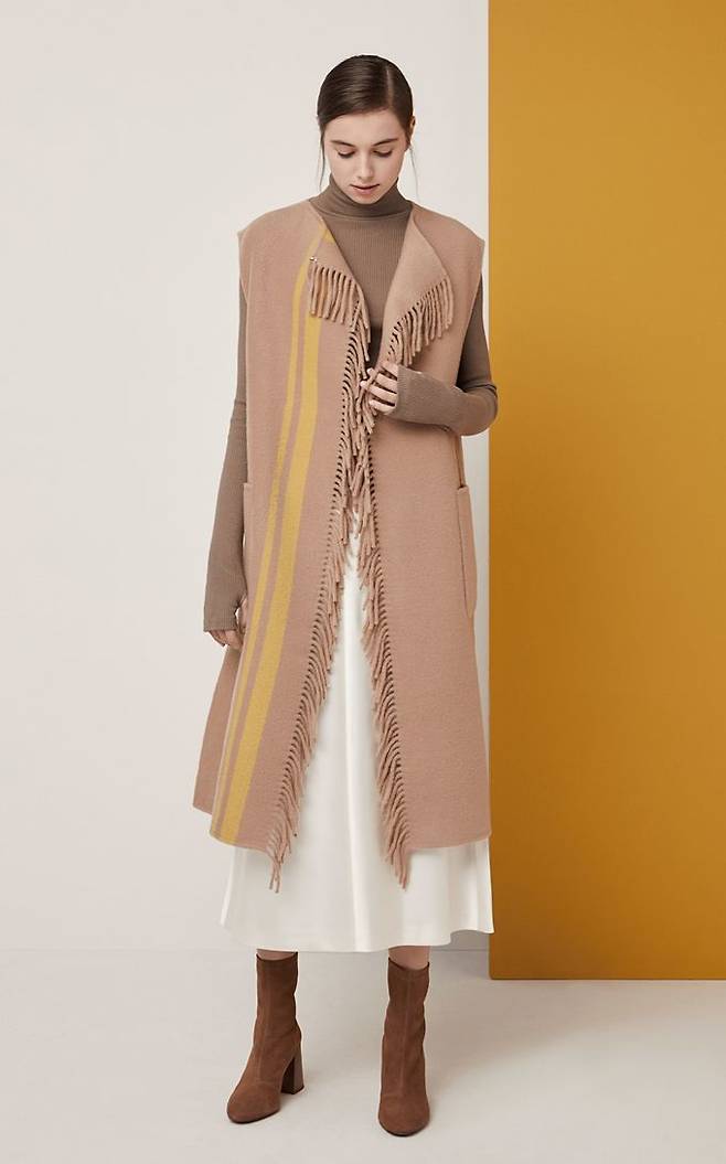 간절기에는 니트나 원피스 등에 걸치고, 겨울철엔 아우터 안팎으로 매치하면 색다른 느낌을 줄 수 있어 활용도가 매우 높다.